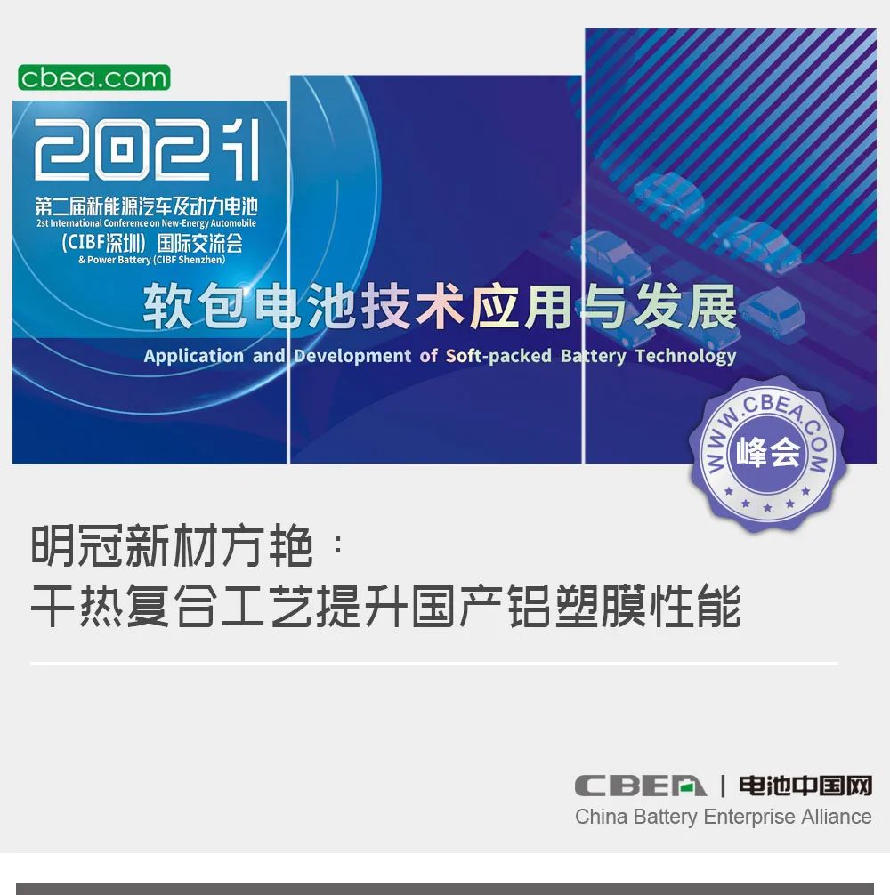 日前,“第二屆新能源汽車及動力電池(CIBF2021深圳)國際交流會”在深圳舉行,在風帆有限責任公司冠名的“軟包電池核心材料及先進技術突破”專場論壇上,明冠新材料股份有限公司產品經理方艷發表了主題為《國產鋁塑膜復合新技術進展及優勢》的演講。