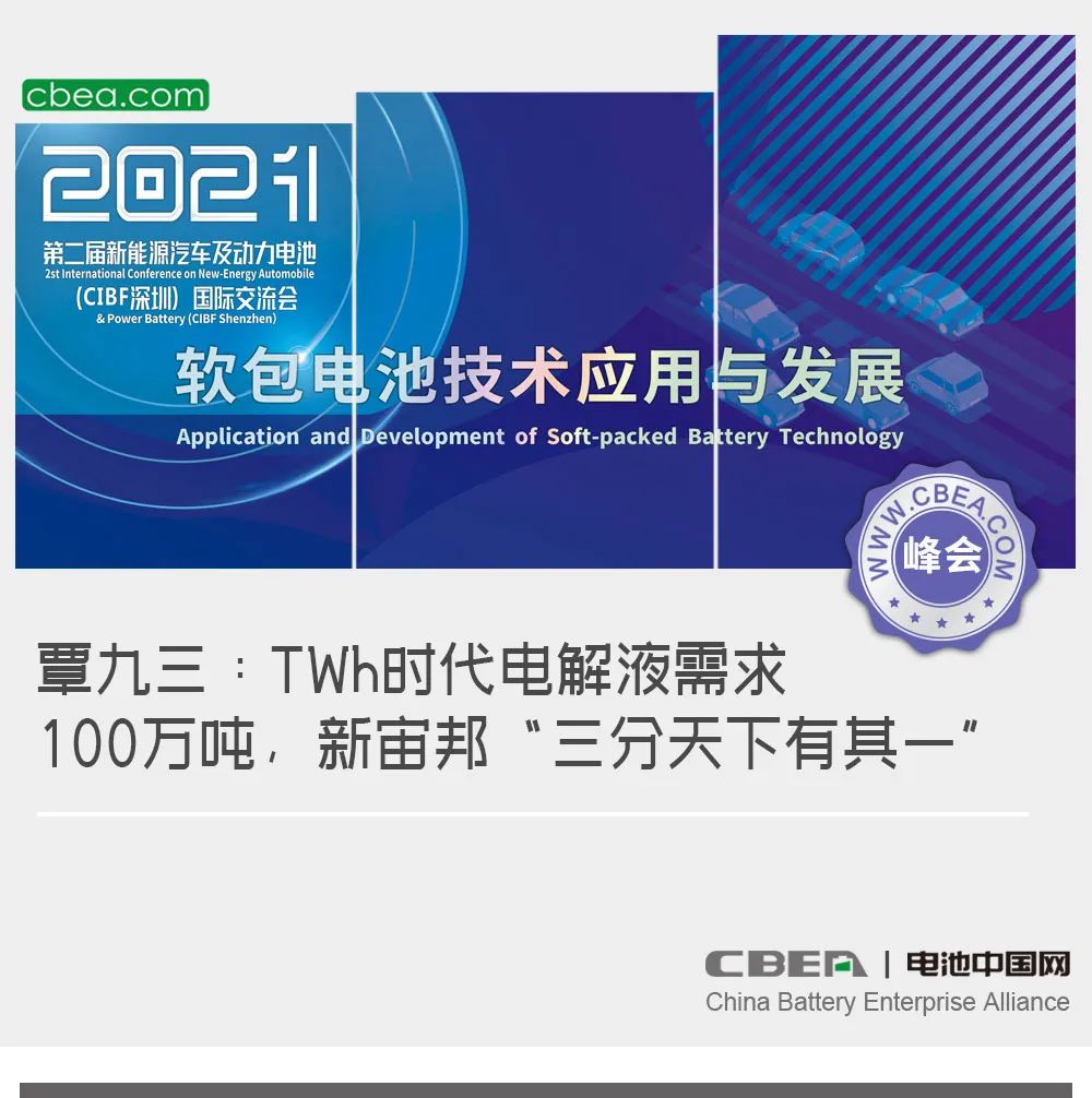 日前,“第二屆新能源汽車及動力電池(CIBF2021深圳)國際交流會”在深圳舉行,在風帆有限責任公司冠名的“軟包電池核心材料及先進技術突破”專場論壇上,深圳新宙邦科技股份有限公司董事長覃九三發(fā)表了主題為《新型電解質(zhì)布局及思考》的演講。