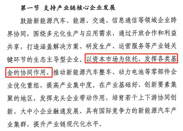 值得注意的是,本月初,國家工業和信息化部在發布的《新能源汽車產業發展規劃(2021-2035年)》(征求意見稿)中提出,以資本市場為依托,發揮各類基金的協同作用,推動新能源汽車整車、動力電池等零部件企業優化重組,提高產業集中度。