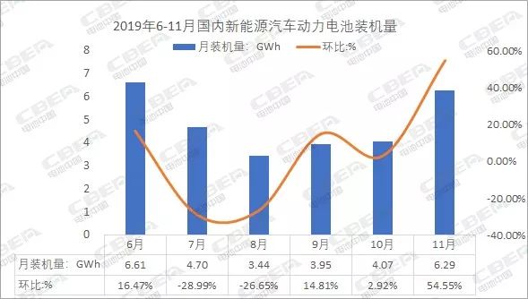 動力電池應用分會統計數據顯示,11月份我國動力電池裝機量達到6.29GWh,盡管與去年同期相比仍下降29.49%,但環比增長了54.29%,是7月份以來的最高點。受今年新能源汽車財政補貼大幅退坡影響,自6月25日過渡期結束后,新能源汽車動力電池裝機量出現大幅下滑,補貼對動力電池裝機產生較大沖擊。