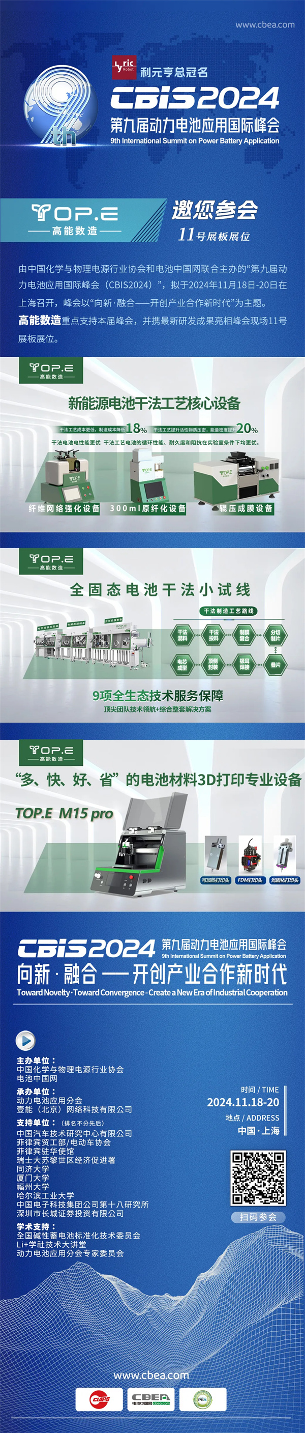 高能數造邀您參加第九屆動力電池應用國際峰會(CBIS2024)