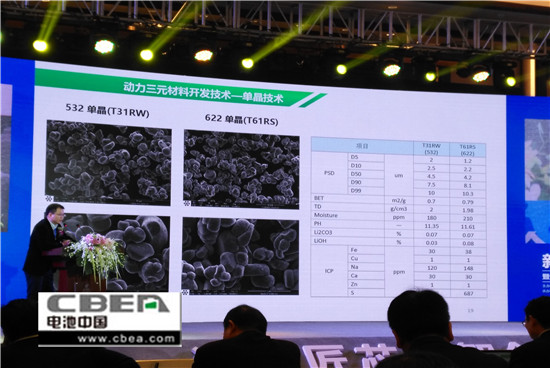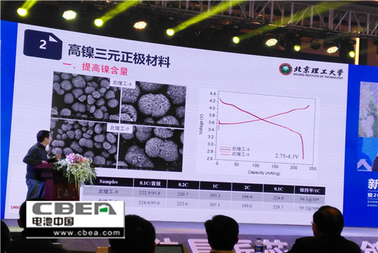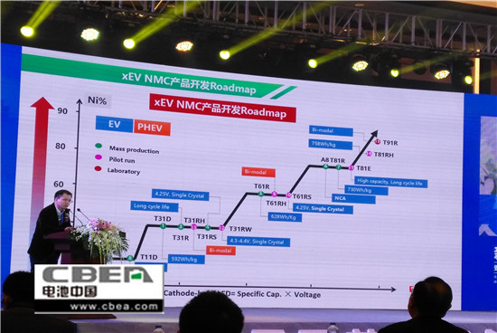 湖南杉杉能源科技股份有限公司研究院副院長譚欣欣就“鋰離子電池高能量密度正極材料開發進展”發表主旨演講。介紹了動力三元材料技術4大方向:中高鎳單晶化、高鎳二次球、大小顆粒獨立研究并合理化搭配和低成本話。