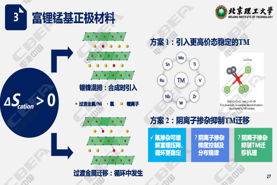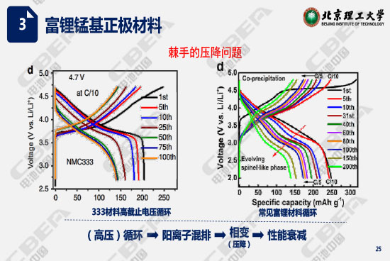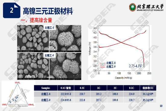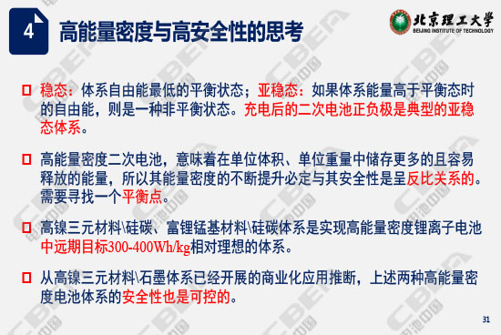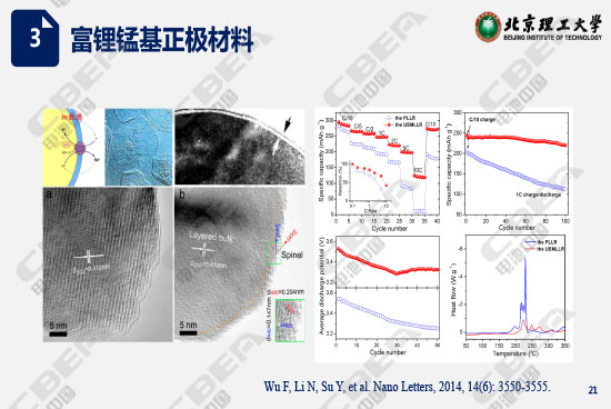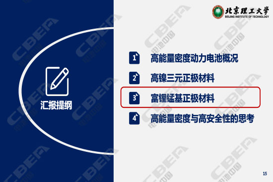 北京理工大學教授蘇岳鋒就“高能量密度動力電池關鍵材料與技術”作主旨演講,分享了高鎳三元正極材料和富鋰錳基正極材料、以及如何在保證安全性的前提下提升電池能量密度。