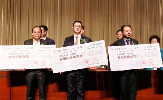 周明明(中)領取工業企業突出貢獻獎