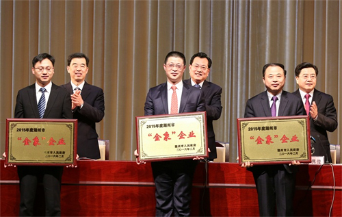 據(jù)了解,“金象金牛”大企業(yè)培育計(jì)劃開始于2014年,湖州市市委、市政府旨在用三年的時間,培育出10家主營業(yè)務(wù)收入超100億元或?qū)嵗U稅金超3億元“金象”級企業(yè),20家主營業(yè)務(wù)收入超50億元或?qū)嵗U稅金超2億元的“金牛”企業(yè),以及70家主營收入超10億元、實(shí)繳稅金超4000萬元且2014年—2016年三年工業(yè)性投入5000萬元以上的“金象金牛”后備企業(yè)。會上,超威集團(tuán)以第一名的好成績,同其它4家企業(yè)一起,被授予湖州市首批“金象”企業(yè)稱號。