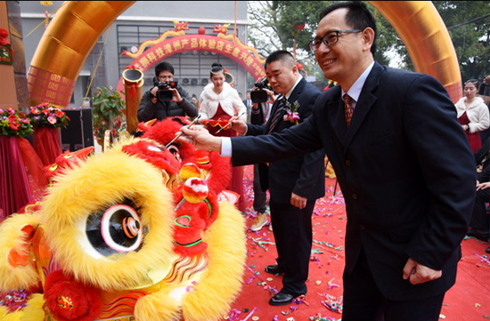 圖為猛獅科技相關領導為漳州體驗店開業剪彩