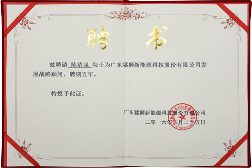 2016年2月25日,陳清泉院士再次蒞臨猛獅福建動(dòng)力寶,董事長(zhǎng)陳樂伍攜猛獅高管接待陳院士一行,雙方就猛獅新能源即將成立的院士專家工作站展開了會(huì)議。對(duì)于猛獅科技迫切提升企業(yè)科研水平以及團(tuán)隊(duì)創(chuàng)新能力,陳院士表示十分贊賞,并看好猛獅科技的發(fā)展前景,愿意同公司簽署戰(zhàn)略合作協(xié)議,并受聘猛獅科技發(fā)展戰(zhàn)略顧問,今后,將充分發(fā)揮理論研究、前瞻性技術(shù)研發(fā)和科技人才資源優(yōu)勢(shì),在猛獅三大板塊的業(yè)務(wù)發(fā)展給予戰(zhàn)略指導(dǎo)和技術(shù)支持。