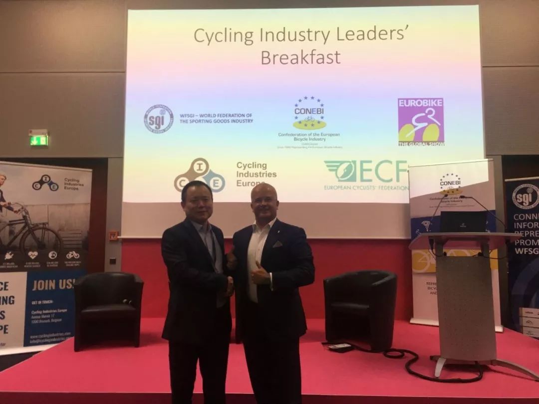 展會(huì)期間,在當(dāng)?shù)貢r(shí)間9月5日,星恒電源副總裁李聲華先生應(yīng)歐洲自行車工業(yè)協(xié)會(huì)輪值主席Tony的邀請(qǐng)參加自行車工業(yè)領(lǐng)導(dǎo)者早餐研討會(huì)。行業(yè)精英一同討論了歐洲電動(dòng)自行車市場(chǎng)的增長(zhǎng)機(jī)會(huì),并對(duì)歐洲的電動(dòng)自行車銷量進(jìn)行了預(yù)測(cè),預(yù)計(jì)到2030年歐洲市場(chǎng)的電動(dòng)自行車銷量將達(dá)到1850萬(wàn)輛。Tony表示,希望星恒繼續(xù)發(fā)揮鋰電行業(yè)標(biāo)桿作用,為歐洲電動(dòng)自行車行業(yè)發(fā)展做出貢獻(xiàn)!