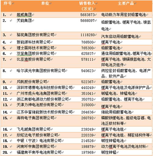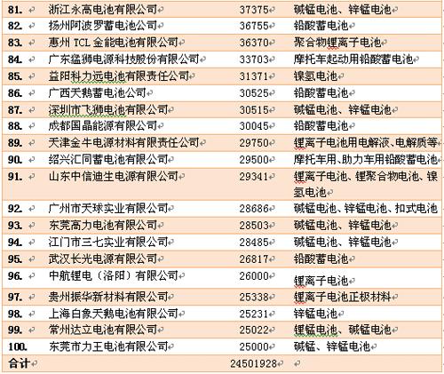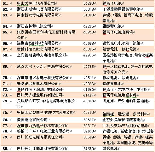 5月29日-30日,由中國化學與物理電源行業協會主辦的“2014年中國電池行業市場年會暨《電池中國》網站上線新聞發布會”在北京召開。與會專家通過電池產業發展現狀及趨勢的分析,為產業健康發展和理性投資提供指導。會議還發布了“2013年中國電池行業百強企業排名”結果,以下為企業名單。