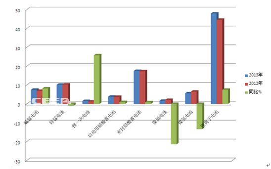 數據表明,2013年我國化學電源主要品種出口總量實現小幅增長,各類電池共出口291億只,而2012年出口量為285億只,同比增長2.1%。