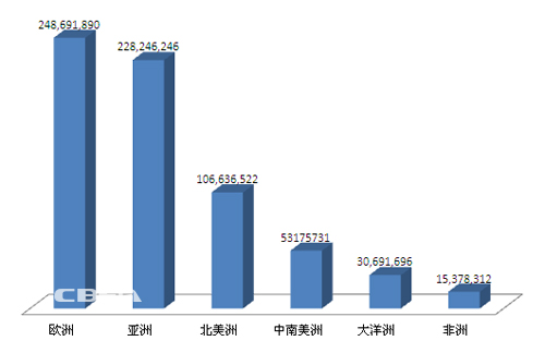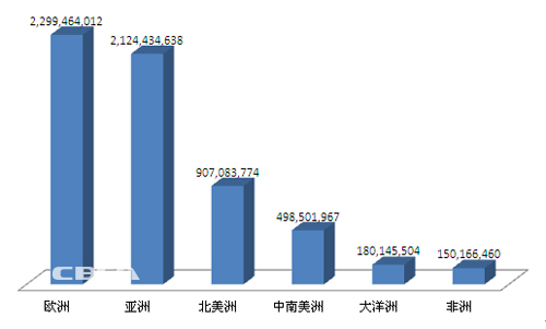 據中國化學與物理電源行業協會發布的《2013年我國電池產業出口數據》,2013年,我國圓柱堿錳電池出口量為61.59億只,比2012年出口57.29億只的數據同比增長 7.5%。2013年圓柱堿錳電池出口額為6.82億元,與2012年出口額6.42億美元相比,同比增長 6.2%。其中,出口歐洲的金額同比增長7.7%,出口亞洲的金額同比增長5.5%,出口北美的金額同比增長0.5%。