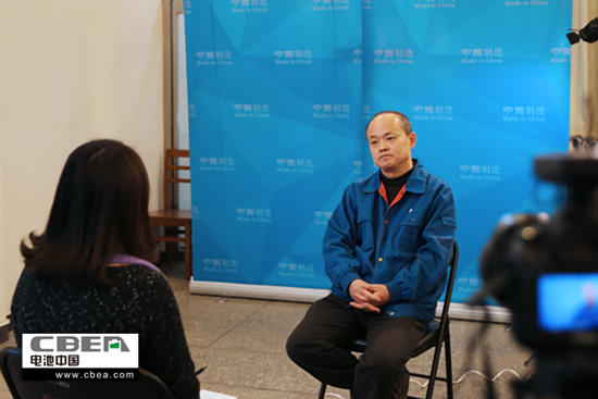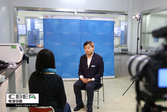 圖為超威電源有限公司市場部總監楊享川接受采訪