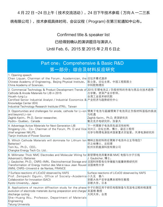 [摘要]2015年4月22日-24日,《第二屆新型電池正負極材料技術國際論壇》將在杭州蕭山召開。