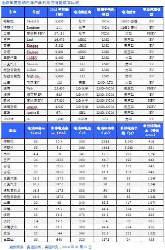 從上表可以看到,不管電動汽車產品形態是PHEV還是EV,車用鋰離子電池是大電池還是小電池,是用什么材料,是什么形狀,起決定性作用的還是電池組的單位儲能成本。結合上期月度報告各款電動汽車產品的2013年銷量來看,單位儲能成本超過1,000美元/kWh的電動汽車產品,除了豐田普銳斯PHEV之外,其他銷量均很一般。普銳斯PHEV 2012年的高銷量主要得益于豐田混合動力技術以及普銳斯HEV在消費者心目中的良好形象,然而,即便如此,普銳斯PHEV 2013年也沒有逃脫銷量下滑的境況。