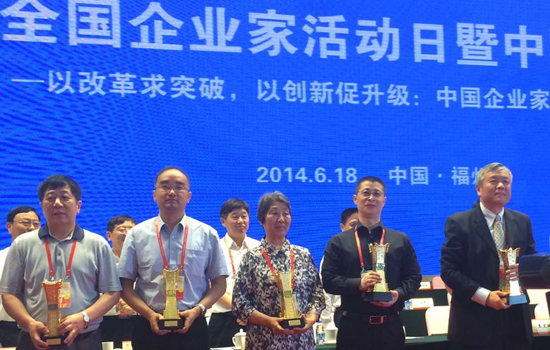6月18日,由中國企業聯合會、中國企業家協會主辦的“2014年全國企業家活動日暨中國企業家年會”在福州海峽國際會展中心隆重舉行。會上,中國企業聯合會、中國企業家協會聯合評選出了2013-2014年全國優秀企業家,并對其進行了表彰。超威集團董事長周明明榮獲“全國優秀企業家”稱號。