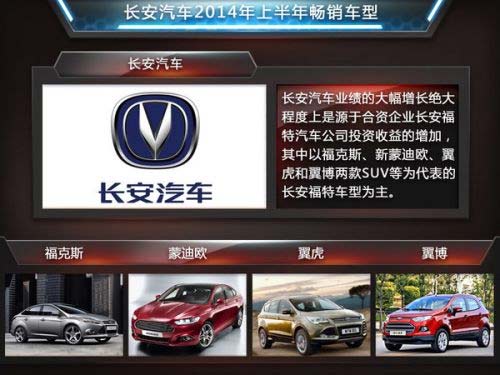雖然2014年上半年自主品牌整體表現(xiàn)不佳,吉利、奇瑞、比亞迪等在內(nèi)的自主品牌汽車企業(yè)均出現(xiàn)不同程度下降,甚至連之前一直保持增長(zhǎng)的上汽集團(tuán)乘用車公司今年上半年也首次出現(xiàn)了2.7%的負(fù)增長(zhǎng),但長(zhǎng)安汽車上半年的業(yè)績(jī)卻同比大幅上升,歸屬于上市公司股東的凈利潤(rùn)較上年同期增長(zhǎng)了155.45%—177.99%,盈利可達(dá)到34-37億元。觀長(zhǎng)安汽車的銷量公告便可發(fā)現(xiàn),其業(yè)績(jī)的大幅增長(zhǎng)絕大程度上是源于合資企業(yè)長(zhǎng)安福特汽車公司投資收益的增加,其中以福克斯、新蒙迪歐、翼虎和翼博兩款SUV等為代表的長(zhǎng)安福特車型銷量一路飄紅,使上半年銷量累計(jì)同比勁增了39%。