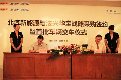 7月25日上午,北汽新能源與世界第二大汽車租賃公司法興華寶簽訂采購簽約暨首批車輛交付儀式。憑借過硬的產(chǎn)品實力和良好的口碑,北汽新能源成為法興華寶中國區(qū)首個新能源汽車租賃業(yè)務供應商。此次交付的20輛E150EV純電動車交車也是北汽新能源在國務院頒發(fā)《關于加快新能源汽車推廣應用的指導意見》以來,大客戶采購方面的第一筆訂單,可以說是北汽新能源在汽車租賃市場探索的一個里程碑式事件。