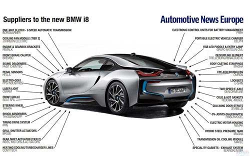 近日,記者獲悉,寶馬i8插電式混合動力跑車的主要零部件供應(yīng)商名單,均勝電子(600699)控股公司德國普瑞成為i8電池管理電控單元供應(yīng)商。