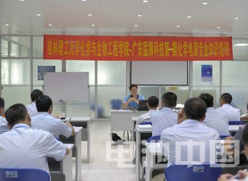 2014年7月28日,由廣東猛獅電源科技股份有限公司(以下簡稱“猛獅科技”)主辦的“桂林理工大學——廣東猛獅科技第一期化學電源專業知識培訓”班,在猛獅科技旗下福建動力寶電源科技股份有限公司開班。本次培訓主要面向猛獅科技及其下屬企業中負責研發、技術以及質量管理崗位的員工,邀請桂林理工大學化學與生物工程學院的博士進行授課,圍繞電化學理論和電池技術進行了系統講解。