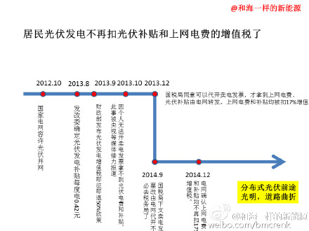 報道“中國自建光伏電站第一人”任凱通過微博透露:“得到國家電網北京順義供電公司通知,個人光伏發電的上網電費和光伏補貼不再扣取17%的增值稅,以前扣的將于明年1月退還。”同時記者了解到,上海松江一光伏電站業主12月29日已經拿到了下半年光伏發電的國家補貼,而且從這個月起國家0.42元/度的補貼將不再扣除17%的增值稅,之前扣除的也已經返還給她。此后,售電部分也將不再扣增值稅。但是地方補貼部分是否會扣除增值稅還需要地方細則。