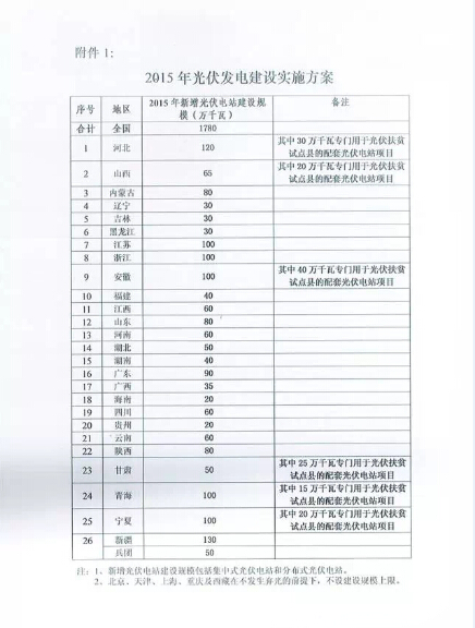 [摘要]日前,國家能源局正式下發國能新能〔2015〕73號文件,發布《2015年光伏發電建設實施方案》。
