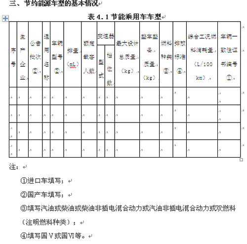 一、本報告包括企業承諾書、企業基本情況、《享受車船稅減免優惠的節約能源 使用新能源汽車車型目錄》(以下簡稱《目錄》)節約能源車型基本情況三份材料。其中企業承諾書、企業基本情況須于首次申報前提交正式書面材料(一式三份),獲得審核通過后,如上述情況沒有變更,則不需重新提交。《目錄》申報車型基本情況通過工業和信息化部(裝備工業司)“節能汽車稅收優惠目錄申報系統”提交。