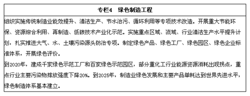加大先進(jìn)節(jié)能環(huán)保技術(shù)、工藝和裝備的研發(fā)力度,加快制造業(yè)綠色改造升級(jí);積極推行低碳化、循環(huán)化和集約化,提高制造業(yè)資源利用效率;強(qiáng)化產(chǎn)品全生命周期綠色管理,努力構(gòu)建高效、清潔、低碳、循環(huán)的綠色制造體系。