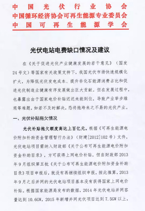 《光伏電站電費缺口情況及建議》