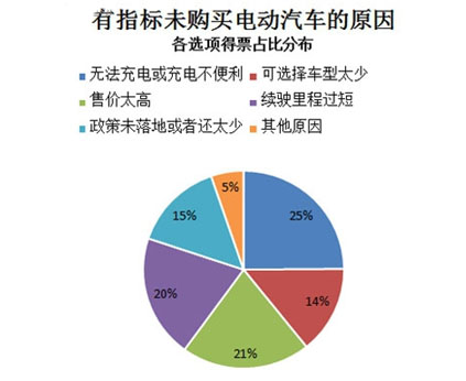在調查中,36.85%的人選擇了售價太高這一選項,在整體原因分布中占21%。新能源車型相比同款傳統汽油車售價高出一大節。北京E150 共有時尚版和科技版兩款車型,其官方售價分別為22.08萬和23.08萬。根據國家補貼政策和相關標準,該車可享受國家補貼(4.75萬)+地方補貼(4.75萬)共9.5萬元,消費者購買E150 的終端價格為12.58萬和13.58萬。但傳統動力2013款兩廂 1.5T 手動樂天版指導價6.18萬。價格高進一步制約了電動汽車的發展。北汽新能源汽車公司最近開展“藍天行動”,每輛E150EV電動車優惠5.1萬元。