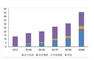 2012年全球碳酸鋰需求僅約13.6萬噸,其中動力電池用碳酸鋰需求約0.8萬噸,在總需求中的占比僅約6%。隨著2014年開始全球新能源汽車將加快放量,將帶動全球碳酸鋰需求的快速增長。預計到2015年全球碳酸鋰需求將達約20萬噸,增量將主要來自于動力鋰電池(預計動力鋰電池對碳酸鋰需求達約4萬噸,占比約20%);至2020年,預計碳酸鋰總需求達約46萬噸,屆時動力電池用碳酸鋰需求將接近20萬噸,占比則將超過40%。
