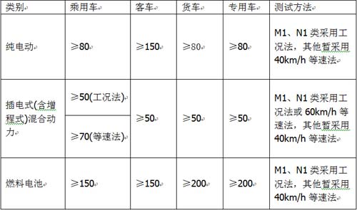 注:1.超級電容、鈦酸鋰快充純電動客車無純電動續駛里程要求