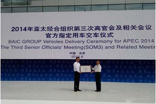 “2014年亞太經(jīng)合組織第三次高官會官方指定用車是北汽集團交付的首批車輛,其中包括旗下自主品牌紳寶D70轎車50輛,蒙派克S商務車40輛,歐輝客車15輛,共計105輛。” 5日,在“2014年亞太經(jīng)合組織第三次高官會官方指定用車交車儀式”上,北汽集團黨委副書記李志立說。