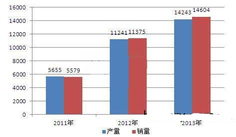 前瞻產業研究院發布的《2014-2018年中國新能源汽車行業市場前瞻與投資戰略規劃分析報告》顯示,2011-2013年,我國電動汽車銷量逐年增長,占新能源汽車的比重也有所提升。2013年,電動汽車產量約為14243輛,占比為81.39%,銷量為14604輛,占比約為82.98%。
