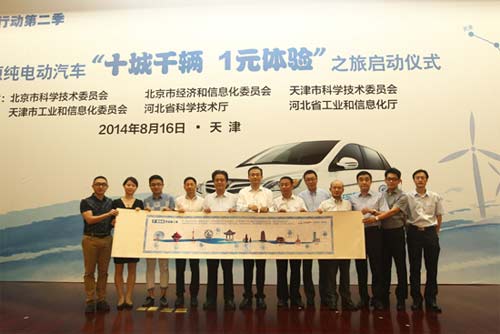在“十城千輛 1元體驗”啟動儀式上,北汽新能源宣布,北汽純電動汽車體驗之旅一直將持續至春節前后,范圍覆蓋天津、青島、南京、常州、蘇州、杭州、上海、長沙、廣州、深圳等10個城市。