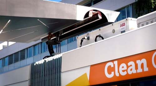 當電動巴士駛入站點,TOSA 系統就會通過機械臂將巴士頂部的電池設備和站點的充電裝置連接起來。只需15秒,電動巴士就能補充抵達下一個站點所需的電量。