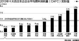 根據(jù)工信部2013年3月發(fā)布的《乘用車企業(yè)平均燃料消耗量核算辦法》,企業(yè)當(dāng)年乘用車燃料消耗量實(shí)際值與目標(biāo)值達(dá)到100%,即可獲得優(yōu)于目標(biāo)值額度,反之將獲得劣于目標(biāo)值額度。上述報(bào)告稱,將有22家未達(dá)標(biāo)企業(yè)獲得劣于目標(biāo)值額度,后三位企業(yè)分別為北汽銀翔、北汽股份和廣汽乘用車,均為自主企業(yè)。