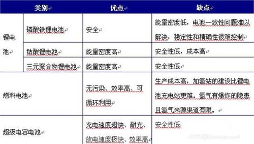 圖表:新能源電池優(yōu)缺點(diǎn)對比表