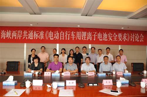 2014年9月26日,海峽兩岸共通標準《電動自行車用鋰離子電池安全要求》討論會在國家輕型電動車及電池產品質量監督檢驗中心順利召開。臺灣工業技術研究院材料與化工研究所高志勇經理、全國化學與物理電源協會劉彥龍秘書長、國家輕型電動車及電池質檢中心黃曉東副主任以及來自上海超威蓄電池有限公司、杭州萬好萬家動力電池有限公司、天能電池集團有限公司、寧德新能源科技有限公司、蘇州星恒電源有限公司、天津力神電池股份有限公司等6家大陸鋰電池行業專家共同參與了海峽兩岸共通標準《電動自行車用鋰離子電池安全要求》的討論。