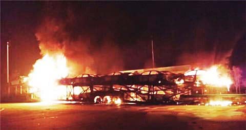 [摘要]20輛從比亞迪西安工廠運往重慶的新能源插電式混合動力“秦”,近日在京昆高速安康段偶遇大火,被燒成灰燼全部報廢。