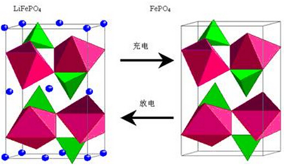 圖1.磷酸鐵鋰的橄欖石結構及鋰離子嵌入脫出示意圖