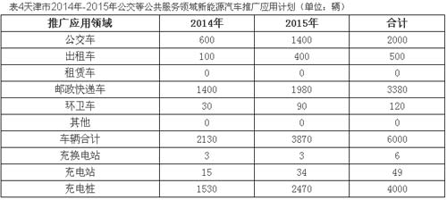 天津市計劃到2015年底重點在公交車、出租車、郵政快遞車、環衛車等領域分三年累計推廣應用新能源汽車6000輛,其中公交車2000輛,出租車500輛,郵政快遞車3380輛、環衛車120輛。