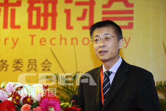 圖為國家工信部消費品工業司副司長高延敏在會上作主題報告