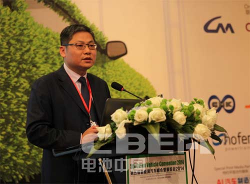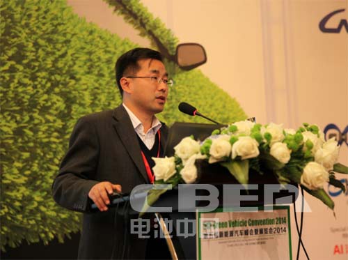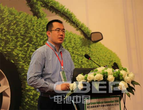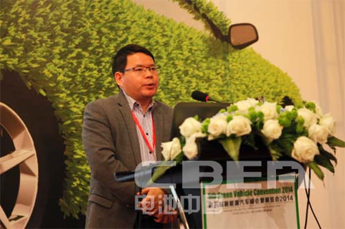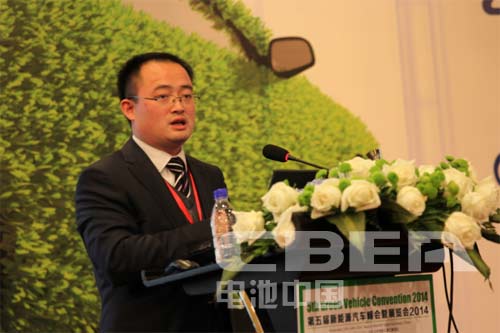 圖為北京汽車集團(tuán)有限公司新能源汽車管理部高級(jí)工程師王智文作《新能源發(fā)力元年的北汽集團(tuán)純電動(dòng)汽車產(chǎn)業(yè)布局》的主題演講