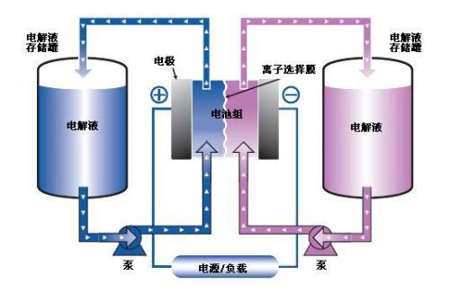 液流電池一般是通過液態(tài)活性物質(zhì)發(fā)生氧化還原反應(yīng)來實現(xiàn)電能與化學(xué)能的相互轉(zhuǎn)化,從而實現(xiàn)電能存儲與釋放的電化學(xué)儲能裝置。因其功率和容量相互獨立、可以深度充放電、安全性好等突出優(yōu)勢,已成為儲能領(lǐng)域的最佳選擇之一。