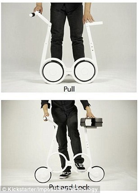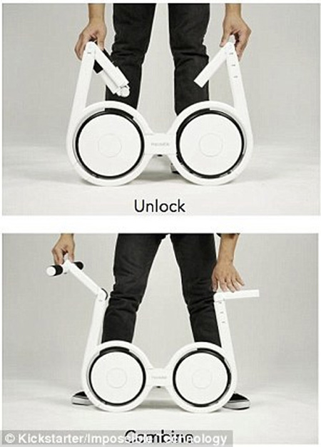 展開這輛碳纖維自行車需要4個步驟。先解鎖,然后將車座和車把扭轉到合適位置,接著將車身抬高到正確高度,最后把車鎖置于合適位置。它的高度可以調節,有4個選擇:2.1英尺、2.2英尺、2.4英尺和2.6英尺。