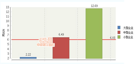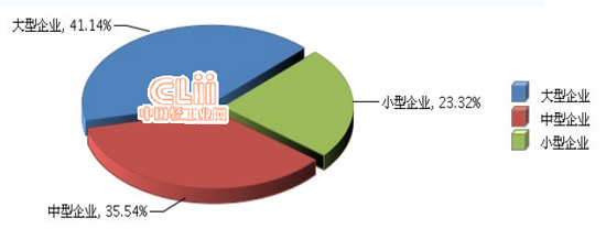 從企業(yè)規(guī)模看,小型企業(yè)增長速度加快。大型企業(yè)完成累計主營業(yè)務收入占41.14%,同比增長2.22%;中型企業(yè)完成累計主營業(yè)務收入占35.54%,同比增長6.49%;小型企業(yè)完成累計主營業(yè)務收入占23.32%,同比增長12.69%。(參見圖5、圖6)
