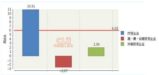 3、內(nèi)資企業(yè)主營業(yè)務收入增長較快