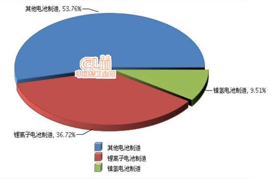 圖7 2014年1~9月全國電池行業(yè)累計主營業(yè)務收入行業(yè)小類占比情況