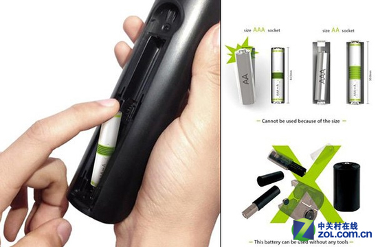 有了這款創意的可伸縮電池,大家就再也不用擔心家中遙控器究竟使用5號電池還是7號電池了,做到大小通吃。由于制造成本等原因,這款電池被設計成可充電式電池,因為如果是一次性電池,過高的價格就不具有實用性了。