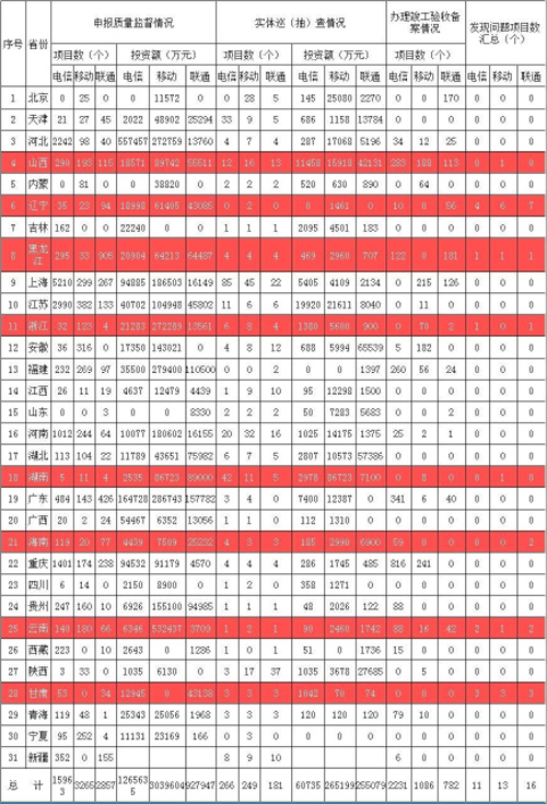2014三季度全國(guó)通信工程質(zhì)量監(jiān)督情況匯總表